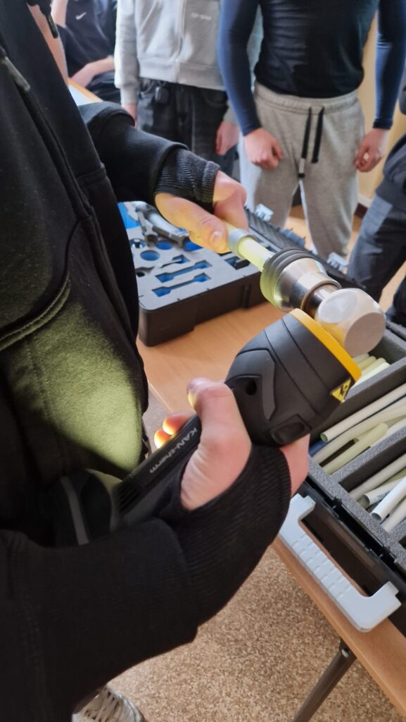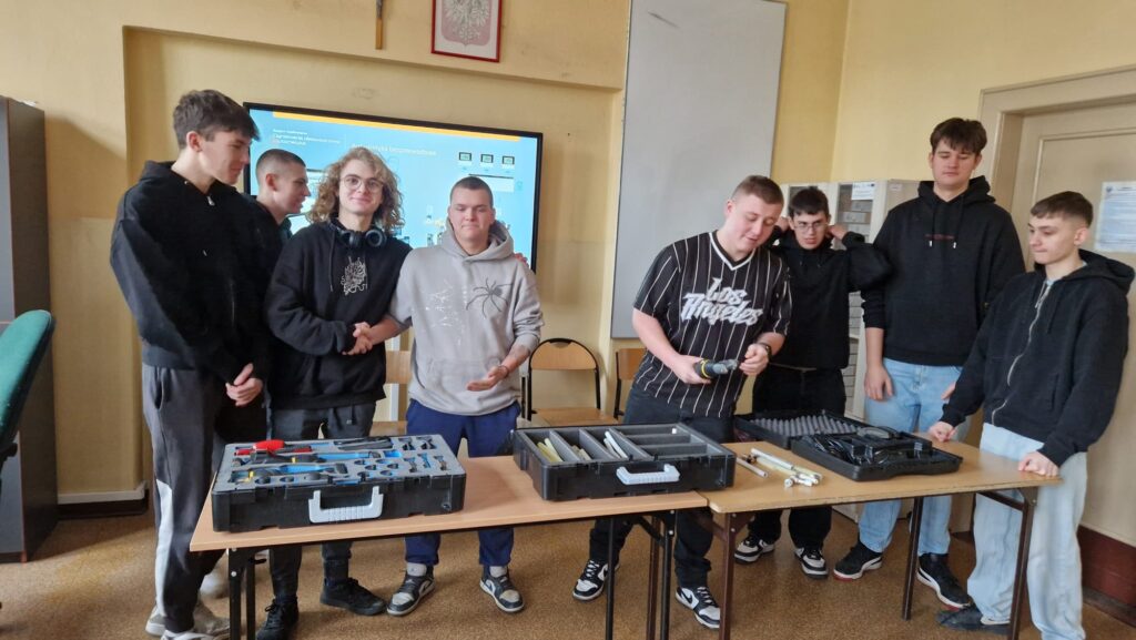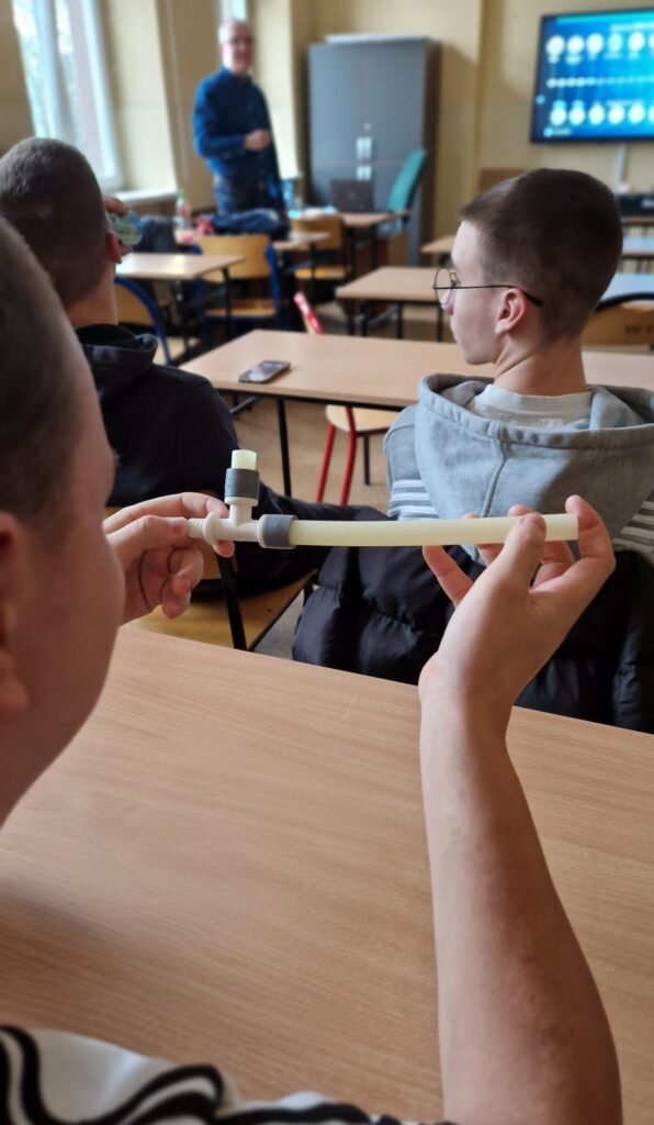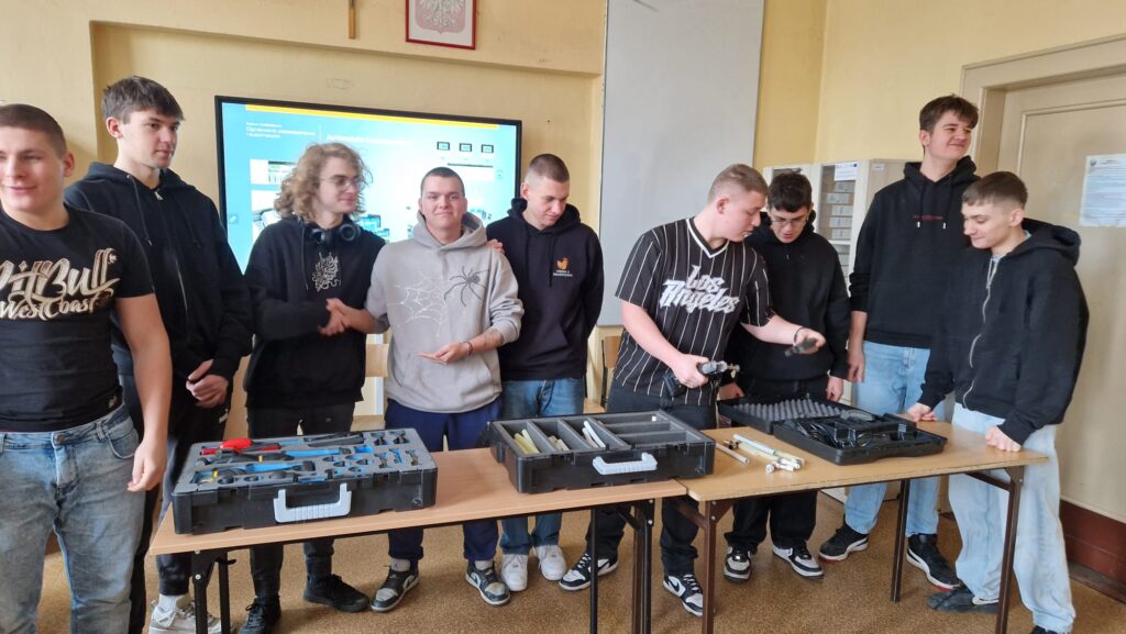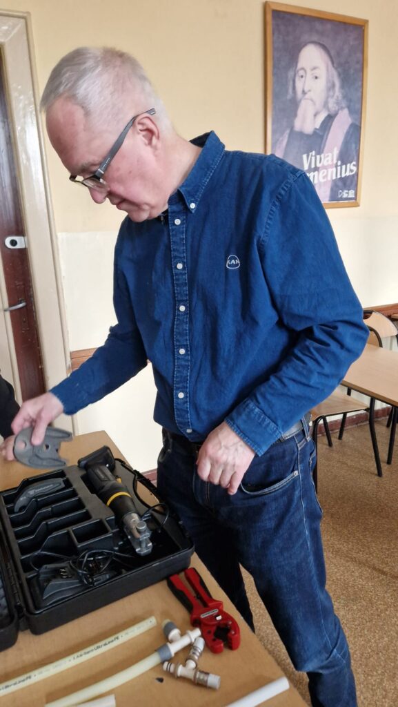 Podczas spotkania przedstawiciel firmy zaprezentował działalność przedsiębiorstwa KAN-therm oraz omówił nowoczesne systemy instalacyjne stosowane w instalacjach wodnych, grzewczych i sanitarnych. Uczniowie zostali zapoznani z rodzajami rur i kształtek, zasadami ich montażu oraz zaletami systemów wykorzystywanych w nowoczesnym budownictwie. Przedstawiono również praktyczne zastosowania omawianych rozwiązań w codziennej pracy montera.
