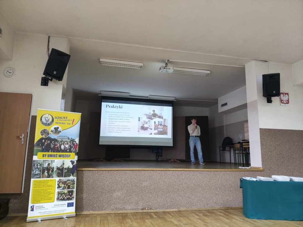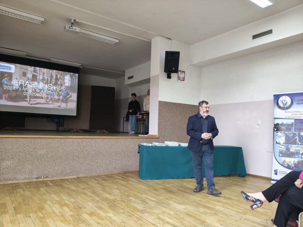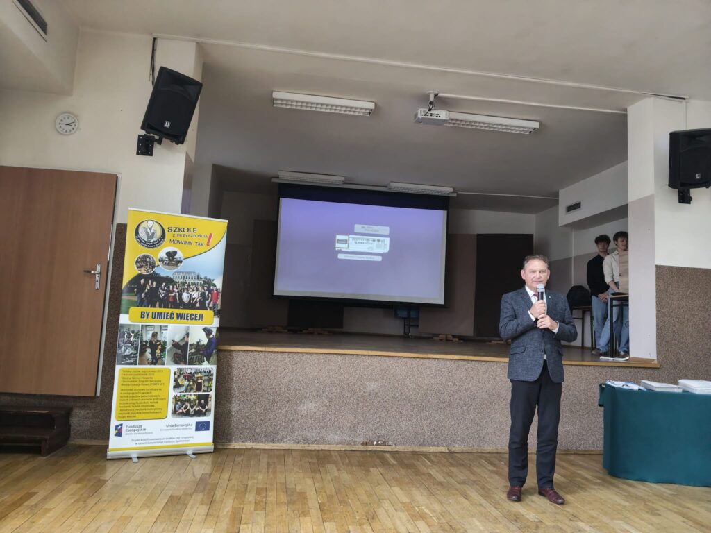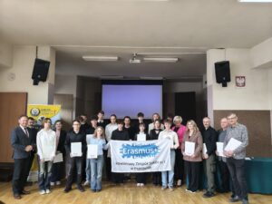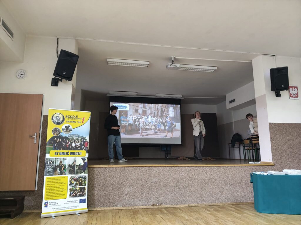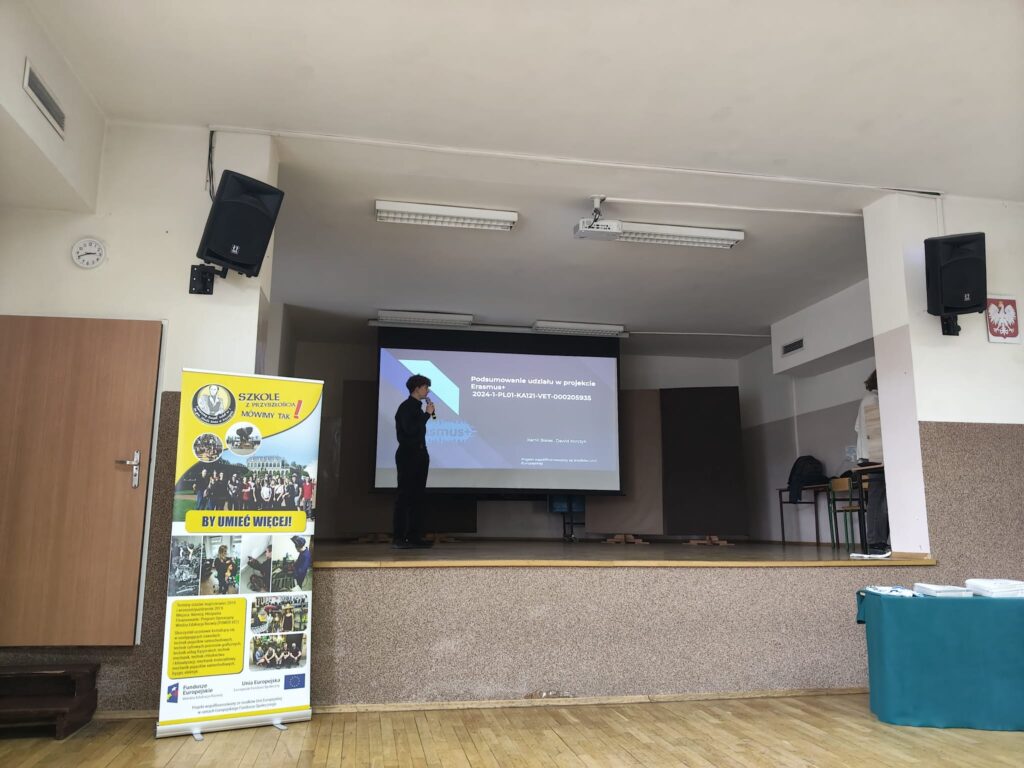 15 kwietnia w auli naszej szkoły odbyło się spotkanie podsumowujące mobilności realizowane w ramach programu Erasmus+ (nr projektu: ERASMUS+ 2024-1-PL01-KA121-VET-000205935; nr akredytacji: 2020-1-PL01-KA120-VET-095553), w których uczestniczyli nauczyciele oraz uczniowie „Samochodówki”. W wydarzeniu uczestniczyli przedstawiciele Starostwa Powiatowego w Pszczynie oraz lokalnych instytucji oświatowych, którzy mogli zapoznać się z efektami mobilności. W trakcie spotkania uczestnicy projektu dzielili się wrażeniami oraz doświadczeniami zdobytymi w trakcie pobytu w Hiszpanii.